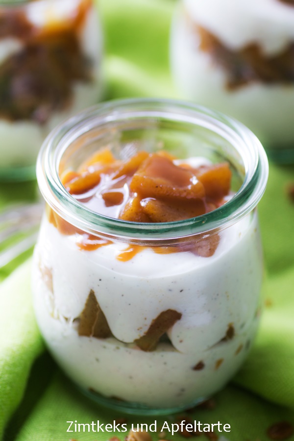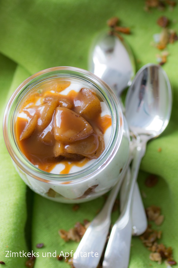 – Variante mitgebracht. Cheesecake im Glas mit Zimtäpfeln, Nuss-Crumble und Karamell.