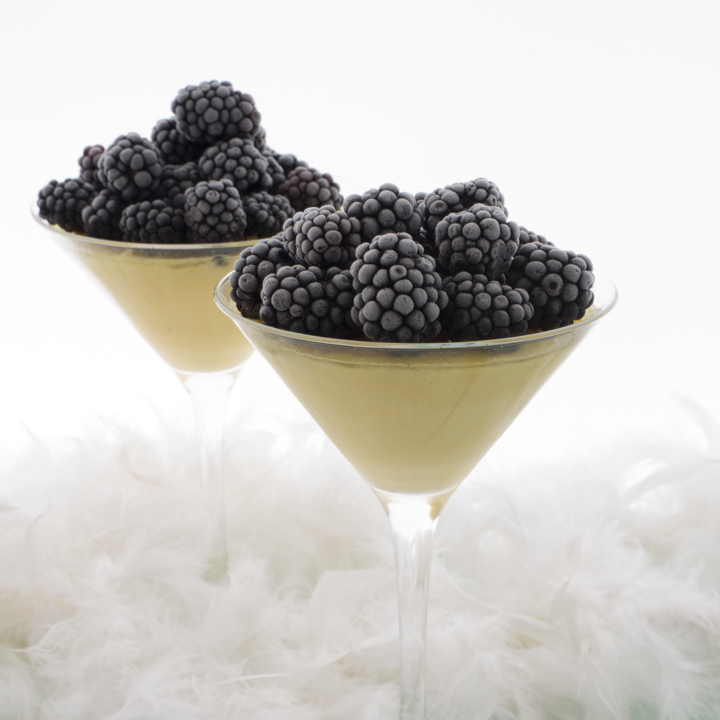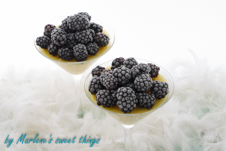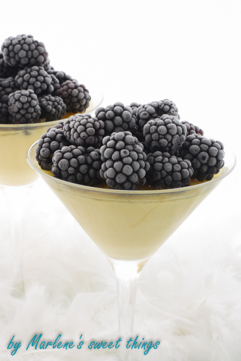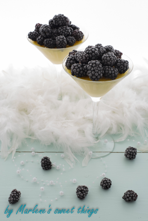 Ihr Motto lautet Gatsby, also alle im Style der 20er Jahre. Gold, Perlen, Federn, Schicke Kleider, Frauen mit Zigarettenspitze in der Hand und vor allem Edel. Daher kommt mein Créme Brûlée mit Brombeeren im Martini Glas daher für Mara und Timm. Schick und Stielecht natürlich…