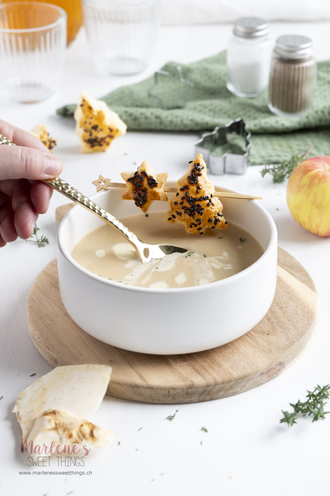 Jede Familie hat seine traditionellen Gerichte an Weihnachten, die ein absolut Muss sind. Aber ganz ehrlich, wenn ich nur daran denke 5 mal Tischgrill, Fondue Chinoise oder Schinken im Brot zu essen, ist mir die Freude vergangen. Warum sollte man nicht mal was wagen und etwas Abwechslung auf den Tisch bringen. Die cremige Selleriesuppe mit Apfel ist definitiv eine Abwechslung.