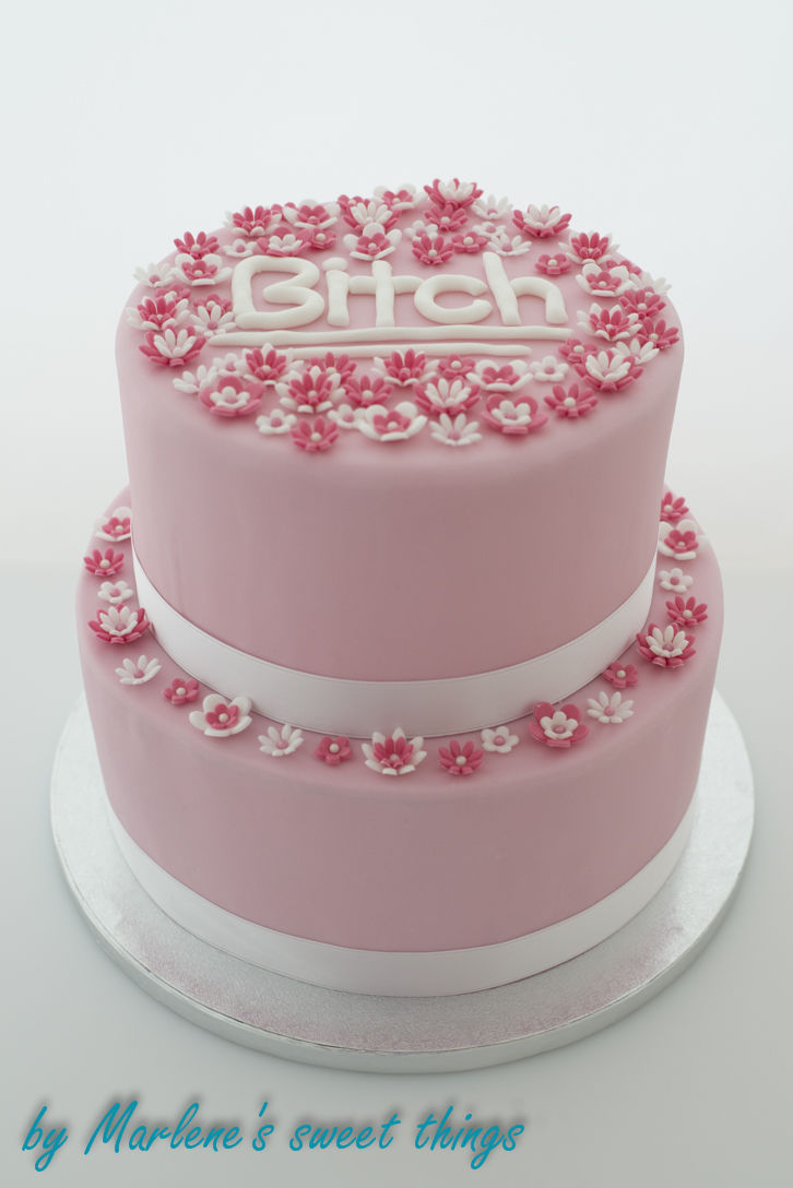 Ein doppelstöckiger Traum in Rosa zum Geburtstag.