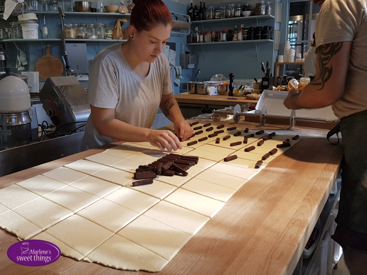 Anschliessend ging es weiter zu John Baker am Stauffacher. Wir erhilten einen Einblick in die auf hochtouren laufenden Bäckerei. An einer Ecke wurden Vorteige angesetzt, an der Andern wurden gerade SchokoCroissant hergestellt. Ich war regelrecht fasziniert von von der Philosophie der Bio Bäckerei und hätte am liebsten selbst Hand angelegt und versucht, viele Tipps mit nach Hause zu nehmen. Am Schluss gab es noch eine kleine Brot-Degustation.