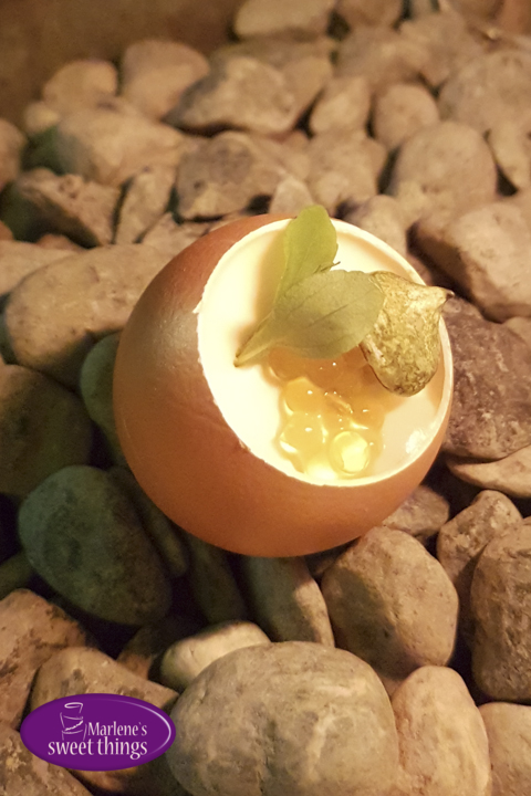 Verlorenes Ei, Passionsfrucht, Kokos, Matcha