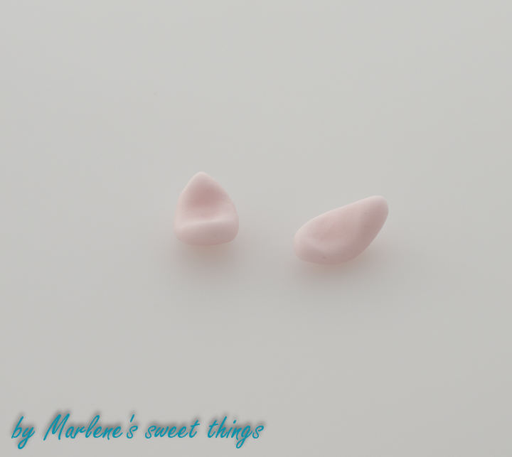 Nehmt etwas rosa Fondant und macht zwei kleine Kegel.