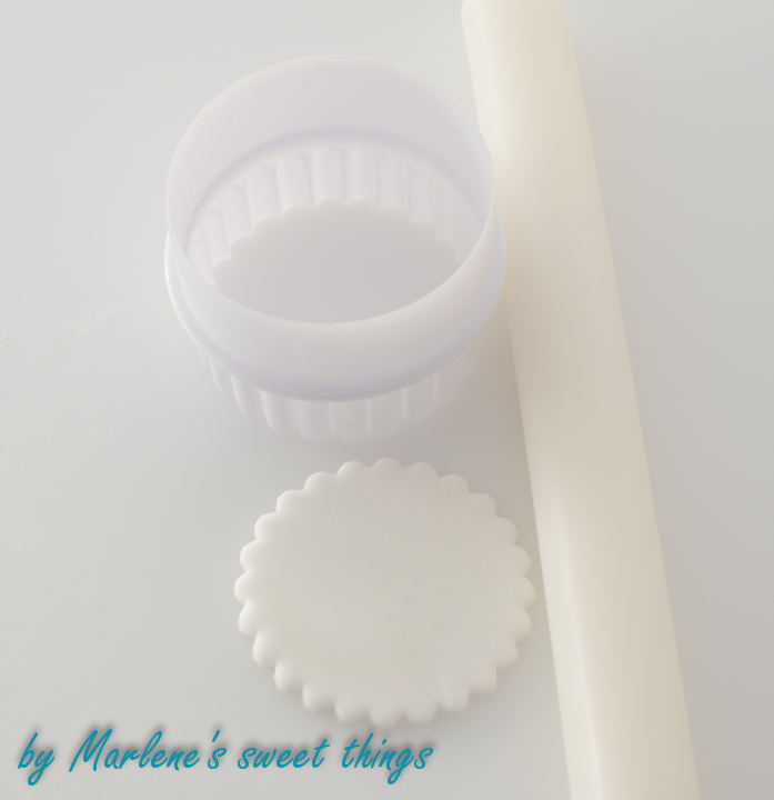 Den weissen Fondant ausrollen und einen Kreis ausstechen.