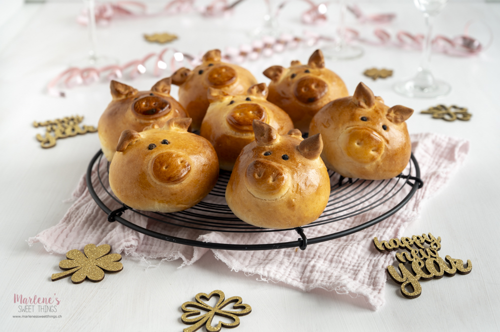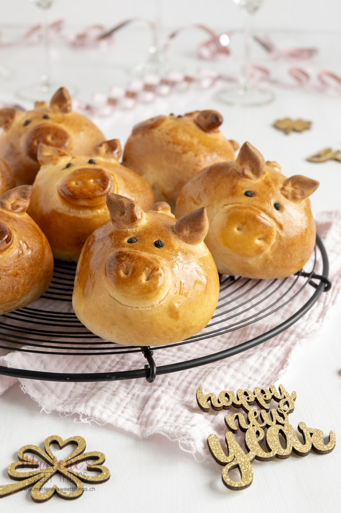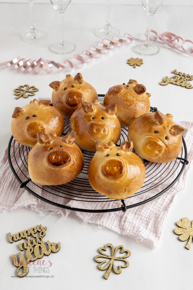 Sehen die Glückschweinchen aus Hefeteig nicht niedlich aus, ich habe mich gerade etwas in sie verliebt. Sie verzaubern mich und meine Gäste beim Neujahrsfrühstück aber auch als die salzige Variante beim Neujahrsapéro. Apropos Apéro kennst du bereits meine leckeren Häppchen? Egal ob Schinkenmousse, Lachsmousse oder Kräutermousse kommen immer alle bei den Gästen sehr gut an.