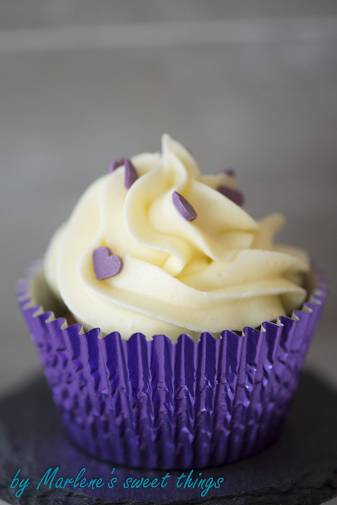 Eine Frage habe ich aber: mit welcher (Rosen?)Tülle hast du das lilane Frosting aufgetragen? Gibt es unterschiedlich große Rosentüllen? (Denn mit meiner bekomme ich nicht so eine schöne große Blüte hin!)