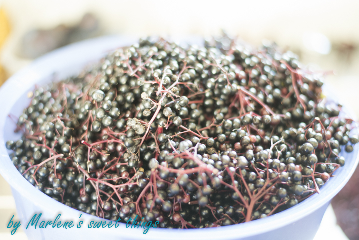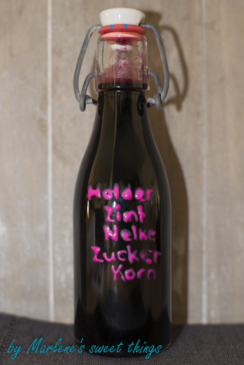 Den Holunderbeerensaft mit dem Zucker, Zimtstange und Gewürznelken