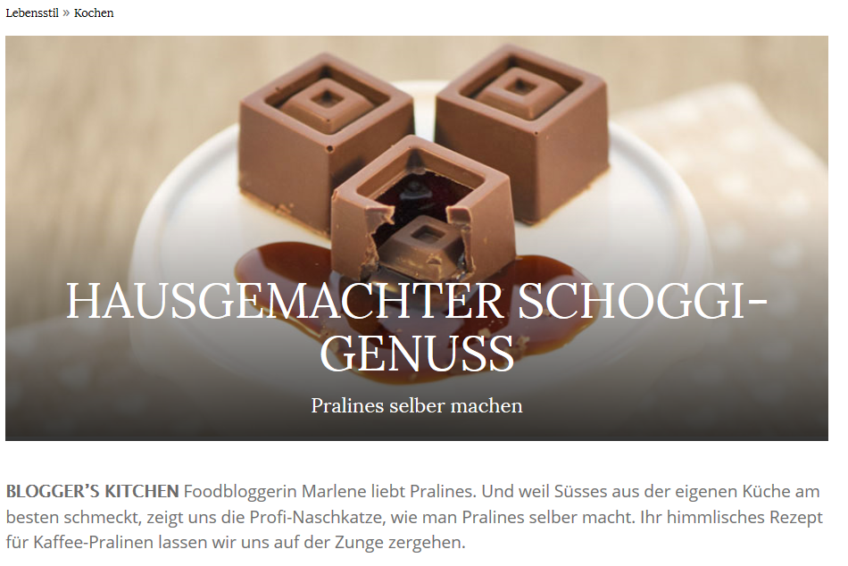 Wer schon immer mehr von mir wissen wollte, findet auf dem Internetportal femininimleben.ch ein Interview mit mir und ein leckeres Rezept für Kaffeepralinen.