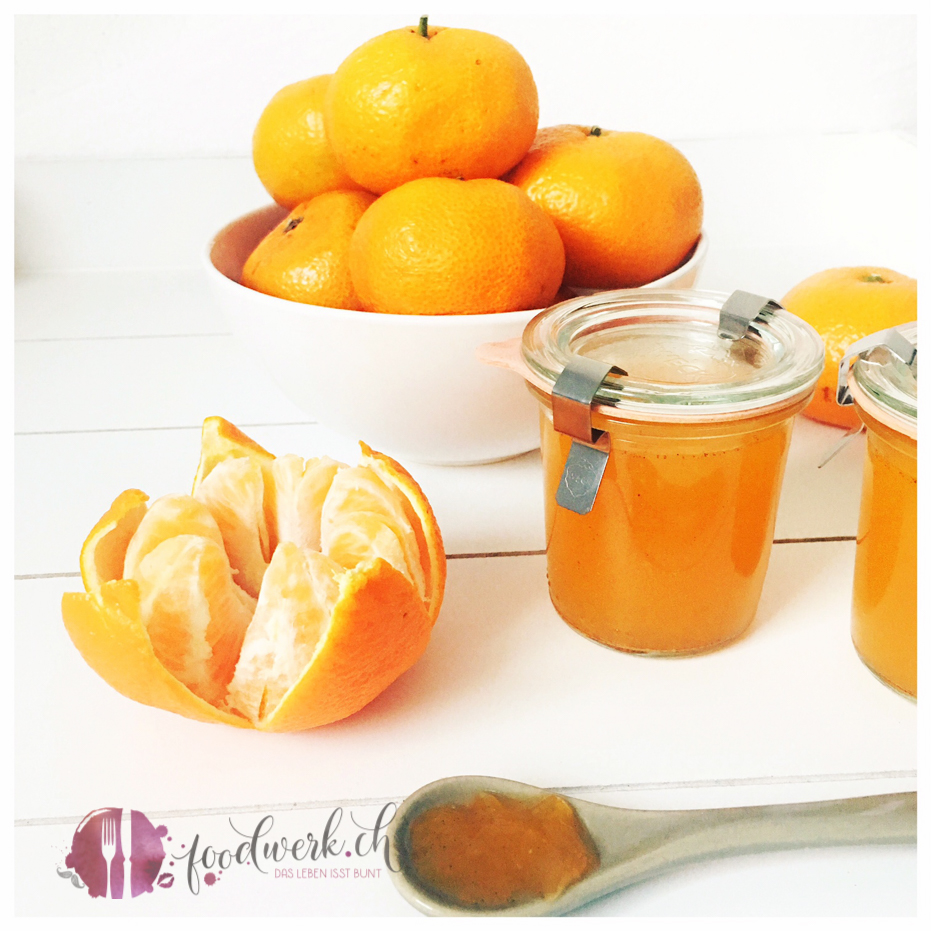 Alle Zutaten in eine Pfanne geben und zum Kochen bringen. Das Ganze für mindestens 1 Minute gut kochen lassen. Die heisse Mandarinenmasse durch ein Sieb giessen und in vorgewärmte, sterile Gläser einfüllen und sofort verschliessen. Mit einem Küchentuch bedecken und langsam auskühlen lassen. Wichtig ist, den Geliervorgang während der Abkühlzeit nicht durch Schütteln zu unterbrechen. Nach dem Auskühlen den Gelee dunkel und kühl lagern. Der geöffneten Gelee muss im Kühlschrank gelagert werden, wo er bei uns nicht lange überlebt. Nicht nur passend zum Frühstück, sondern auch zu einem guten Stück Käse ist dieser Gelee sehr gut geeignet, denn das Leben isst bunt!