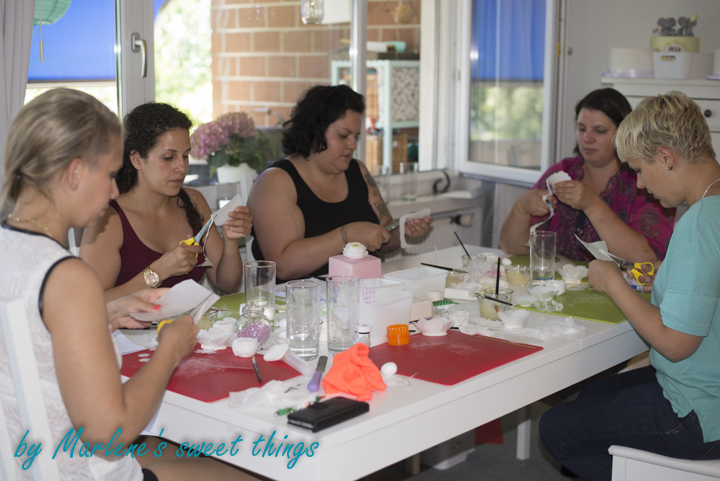 Lange habe ich hin und her überlegt und irgendwie mich auch nie getraut ob ich Kurse anbieten soll und möchte. Doch dann nahm ich all meinen Mut zusammen und beschloss mit einigen Tortenmädels aus einer Schweizer Facebook-Gruppe einen Kurs zu machen. Nervös habe ich alles vorbereitet. Der Tag X kam immer näher und ich wurde lustigerweise immer ruhiger, aber nur dank dem, dass zwei liebe Freundinnen sich opferten und sich als Testimonials zu Verfügung stellten. Allerdings stellte sich heraus, dass die Zeit der grösste Feind sein wird, aber das haben wir schlussendlich super gemeistert.