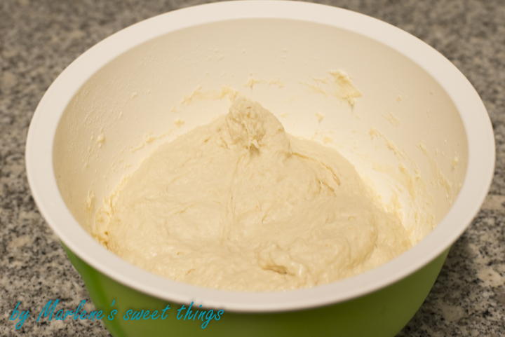 Schnell suchte ich das Rezept und bereitete es vor in der Werbepause des Spielfilmes, eigentlich waren es nur 3 Minuten. Am Morgen ging ich ganz neugierig zum Kühlschrank und siehe da, es hat super geklappt, ausser ich muss eine Notiz an mich selber machen. Nächstes Mal muss ich unbedingt die grosse Teigschüssel nehmen!