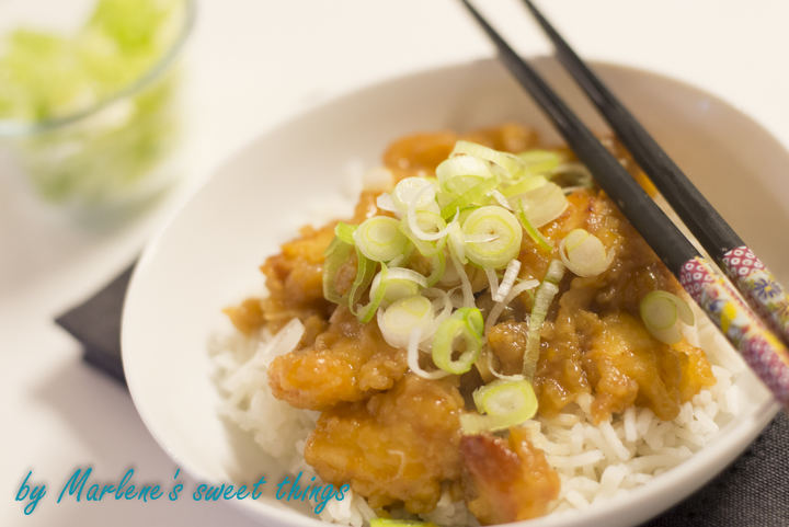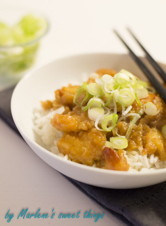 Wie lecker – ich bin ja (leider) ganz verrückt nach frittiertem Hähnchenfleisch und dann noch mit einer druchtigen Soße – PERFEKT! 🙂