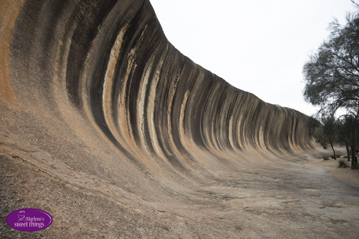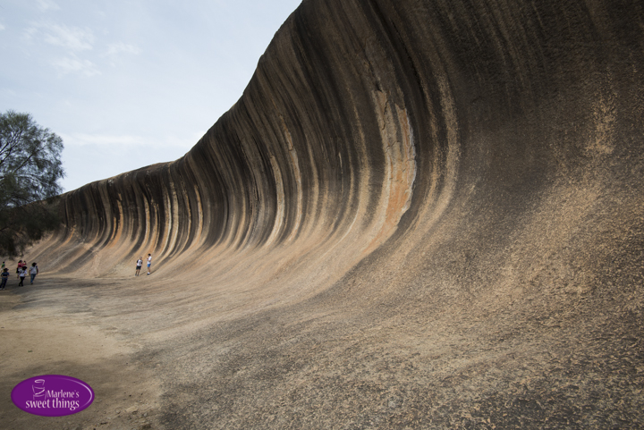 340km östlich von Perth liegt das kleine Outbackdörfchen Hyden. Im Motel wurde uns mitgeteilt das Jährlich 150`000 Besucher zu ihnen strömen. Jetzt fragt man sich für was?  Aber der 2`700 Millionen Jahre alte Formation muss man gesehen haben. Das Wahrzeichen des Westen ist eine 15m hohe und 110m lange Welle. Der interessante Felsen sieht wie eine Welle aus und beinhaltet ein interessantes Farbspiel aus ockerfarbenen, sandfarbenen sowie rostroten Tönen. Wenn man sich auf die steile Kante stellt, hat man das Gefühl, dass jeden Moment die Welle bricht wie im Meer.