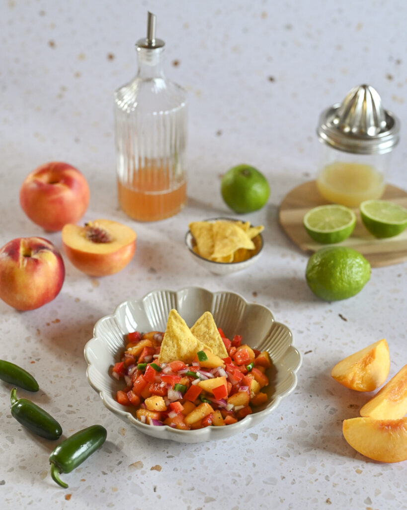 Für unser gemeinsames Projekt Saisonal² haben Steffi von Ringel & Blume für Pfirsiche/Nektarinen im August entschieden. Bei ihr findest du ein leckeres Rezept für ein Nektarinen-Salsa_mit-Jalapeno. Jetzt hast du neben Pfirsich Galette ein weiteres feines Rezept für Nektarinen, womit wir uns definitiv vom Sommer verabschieden.
