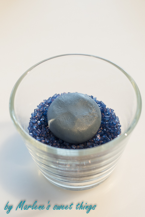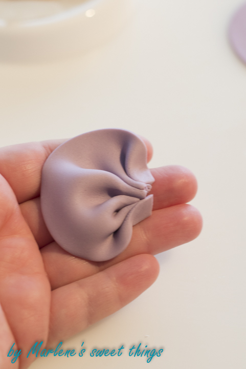 Ihr nehmt die Farbe und formt eine Kugel und drückt sie Flach.