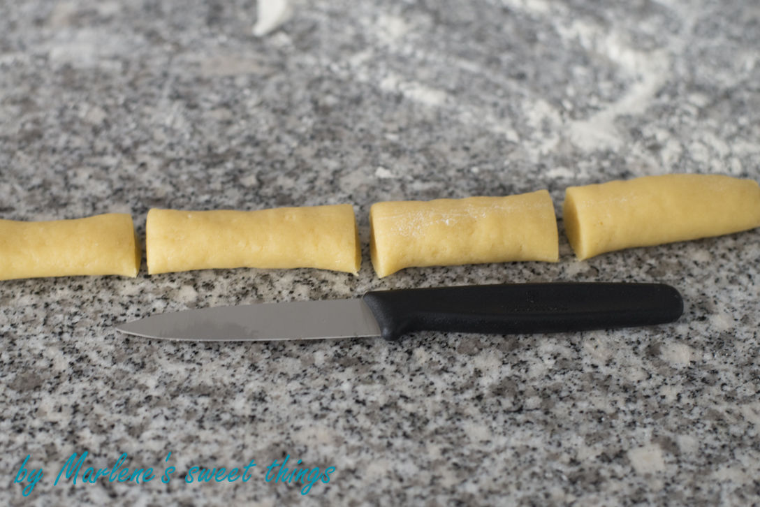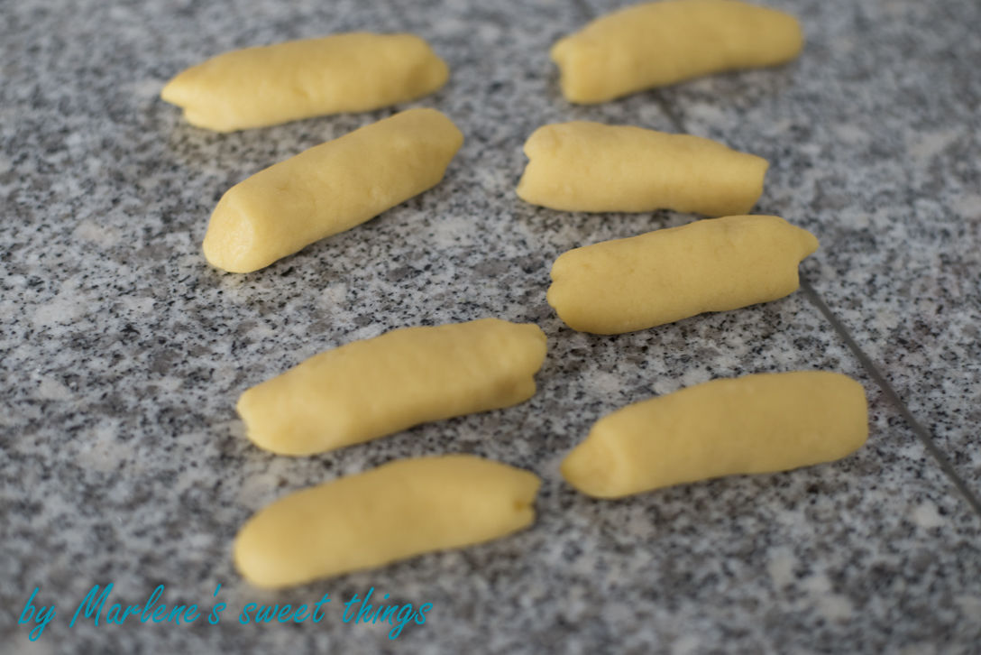 Aus dem Teig auf wenig Mehl fingerdicker Rollen formen,