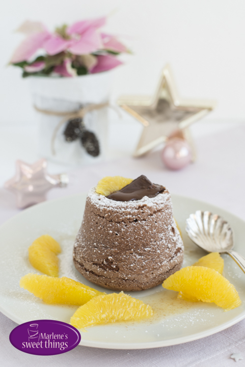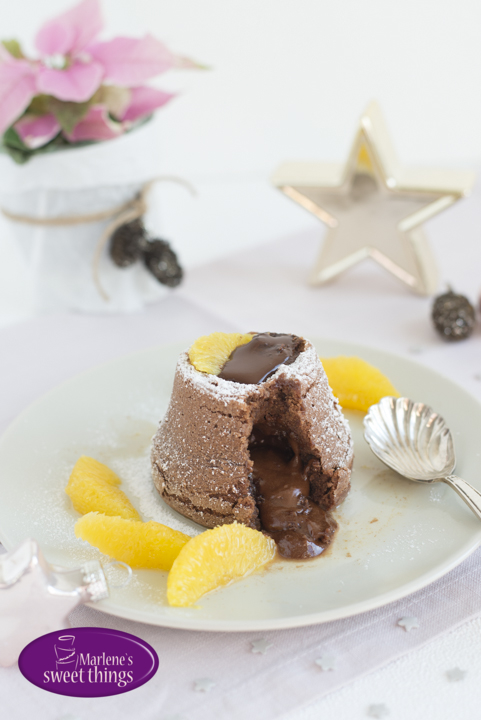 Da ich so viel Zeit wie möglich mit meinen Gästen am Tisch verbringen möchte, habe ich mir dieses Jahr ein Menü ausgesucht, welches sich sehr gut vorbereiten lässt. Inspirieren lassen habe ich mich von der Weihnachtsseite der Migros. Ich habe mich für ein warmes Schokoladenküchlein mit flüssigem Kern als Dessert entschieden. Dazu gibt es selbstgemachte Vanilleglacé und marinierte Zimt Orangen. Hört sich jetzt nach sehr viel Arbeit an, aber ich werde das alles vorbereiten. Den Kuchenteig kann ich bereits 12 Stunden im Voraus vorbereiten und die gefüllten Gläschen in den Kühlschrank geben. Die marinierten Orangen schmecken sogar noch besser, wenn sie ein paar Stunden durchgezogen sind.