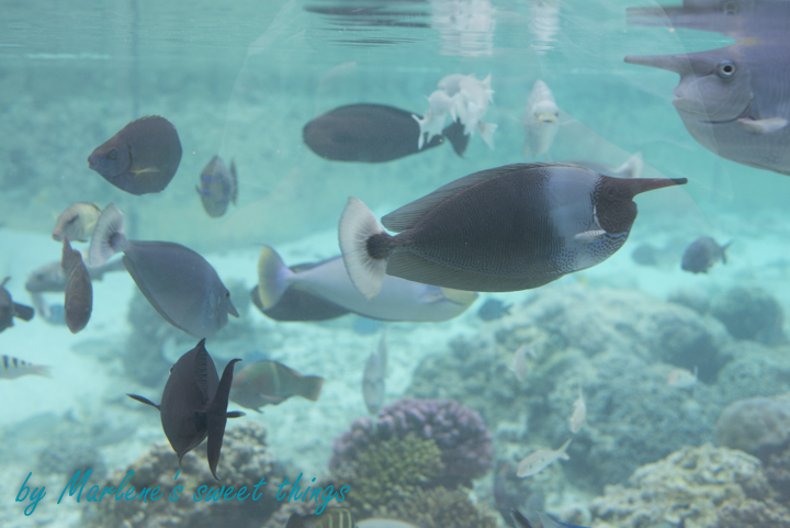 Wir durften uns um eine wunderschöne grüne Schildkröte kümmern, die eine bissige Begegnung mit einem Hai hatte und dadurch eine Vorderflosse verlor. Sie durfte erst seit Kurzen wieder im grossen Becken schwimmen, den die Wunde musste zuerst abheilen. Eine Schildkröte muss zuerst wieder Schwimmen lernen mit 3 Flossen, denn am Anfang dreht sie sich nur im Kreiss. Mit der Zeit lernt sie, wie sie die Kraft der Flossen einsetzen muss, so dass sie sich wieder schwerelos geradeaus durchs Wasser bewegen kann, aber das ist ein steiniger Prozesse. Wir haben sie begleitet im grossen Schwimmbecken, darauf geachtet, dass sie schwimmt, an die Wasseroberfläche kommt zum Luftholen oder ihr eine kleine Hilfestellung leisteten, wenn sie sich gedreht hat, bis sie wieder die Orientierung wieder fand.