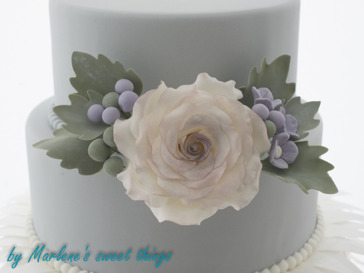 Für die neue Hochzeitssaison und den Weihnachtsmarkt musste eine neue Schautorte her. Was macht man, wenn man freie Hand hat und so viele Ideen im Kopf hat? Genau man macht mal drauf los, denn es kommt sowieso etwas anderes heraus. Eigentlich wollte ich was Romantisches mit Rosen und Perlen, nun ist es eine Vintage-Torte geworden, zwar nur mit einer Rose dafür eine Grosse..