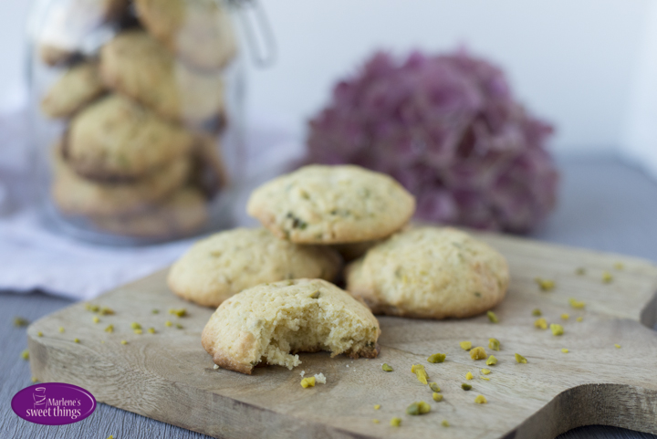 Letzte Woche war es soweit, ich musste mich das erste Mal einkuscheln auf dem Sofa. Brr war das Kalt. Am Abend wird es schon ziemlich kühl und am Morgen weiss man gar nicht recht was man anziehen soll, den am Tag werden immer noch 20 Grad erreicht. Wenn dieser Augenblick gekommen ist, dann ist es definitiv höchste Zeit um Cookies zu backen. Da der Nebel bei uns schon jeden Morgen die Aussicht trübt, brauch ich etwas Farbe beim Naschen. Dieses Mal sollte es das Grün sein von der Pistazie.