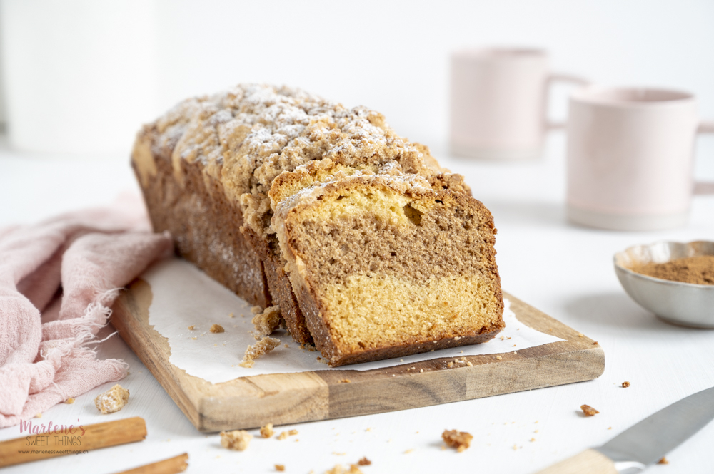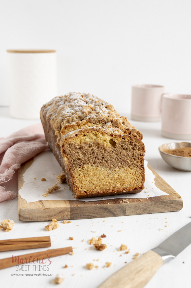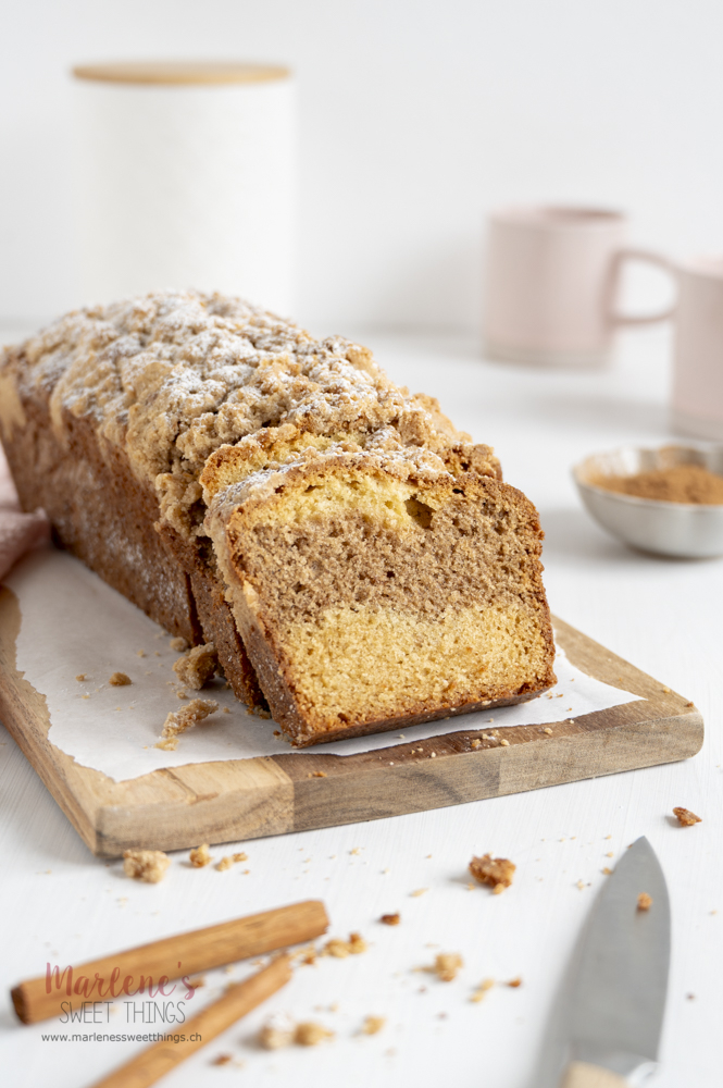 Ich habe noch lange nicht genug von Zimt, auch wenn jetzt die Weihnachtszeit vorbei ist, liebe ich das wärmende Gewürz sehr. Von diesem Zimt Marmor Streuselkuchen träume ich nachts, denn der Kastenkuchen mit Zimt und Streuseln ist fluffig, saftig und durch die Streusel einzigartig. Der klassische Marmorkuchen ist der Lieblingskuchen von meinem Mann und meist gibt er keiner anderen Variante eine Chance, aber zu diesem Rezept, hat er mir die Erlaubnis gegeben ihn wieder zu backen. Das heisst was!