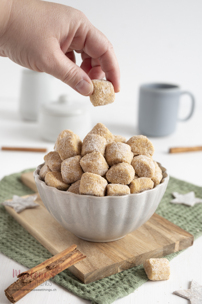 Diese einfachen Weihnacht Guetzli sind bestimmt seit einem Jahrzehnt nicht mehr aus der Foodblogger Szene weg zu denken. Es gibt so viele Abwandlungen des Originals, da es kaum Grenzen gibt wie man sie anders Aromatisieren kann. Die Zimt Traumstücke sind für mich Weihnachten pur. Das zarte Mürbeteig Guetzli ist nicht nur schnell gemacht und sondern auch das perfekte Eigelb Verwertung Rezept, wenn man Zimtsterne gebacken hat.